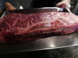 シェフの後藤さんが、ニコニコしながら「サカエヤ」さんが手当をした牛肉を並べてくれる。
