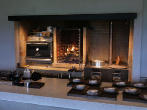 このレストランは薪と炭を多用し、料理を仕立てる。