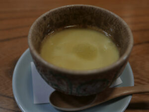 まず、香茸と金華豚の温かなスープ