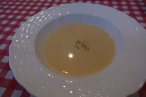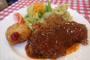 チェックのテーブルクロスも、まさに洋食の雰囲気を作り上げる。