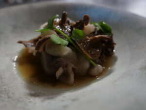 タラの白子は焦がしバターで火入れ
