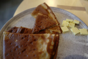 「バターは小さく切ってクレープと一緒にお召し上がりください」とスッタフからのアドバイス。