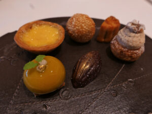 洋梨のボンボンショコラ、柚子ガナッシュショコラ、六条大麦のプチシュー