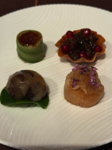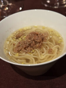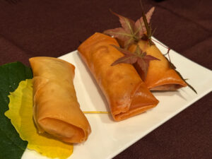 北京ダックの皮は湯葉を揚げたもので見立てる