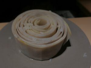 里芋を薄く切り 米と共に炊き画像のように巻く