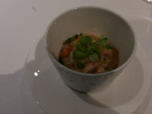 柚子の香りあり、柿も細く切り、雲子も入り、刺激的な一品に。