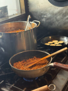 キーマカレーに野菜を加えたチーズが乗っかる。