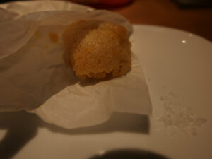 適度な苦味と炒り米の粒々の食感も効果的であった。