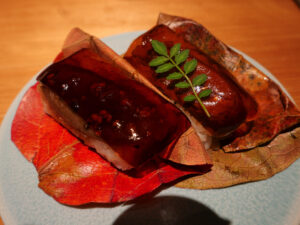 「秋の柿の葉すし 香りのベール 子持ち鮎 宇陀牛蒡」