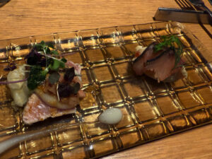 寒ブリスコッタート(炙り)カブマリネ、カブピューレ