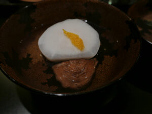 一番だしと鯛の骨、香茸