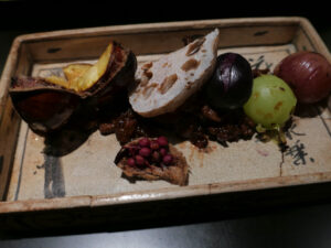 そこに栗、葡萄、実山椒などを合わせる。