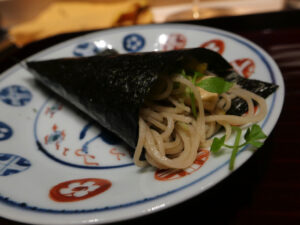 手打ちそばの手巻き寿司