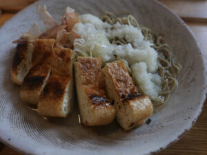 蕎麦の上に大根おろし、そこにネギと鰹節を乗せる。