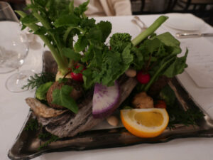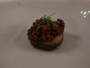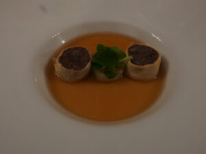 ブーレット(鹿の肉団子)湯葉巻き 芹の風味も生きる。
