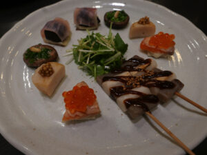 椎茸、フォアグラ、ホタテ、コンニャクなど