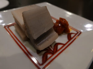 蓮根には馬糞雲丹の塩漬け