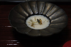 この季節ならではの先付 甘酒と白味噌 発酵の賜物