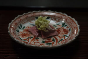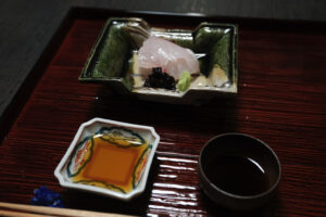天然鯛のへぎ造り 十六島岩海苔 山葵 土佐醤油