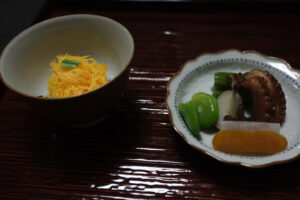 飯蛸・葉牛蒡 一寸豆 からすみ大根