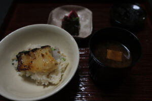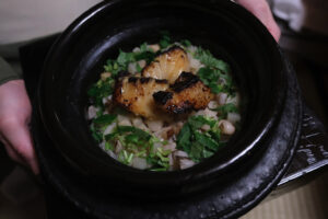 蓮根御飯 銀鱈幽庵焼き 搾菜 三つ葉