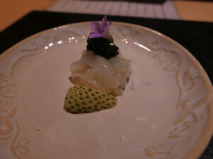 アオリイカは細かく切りキャビアと和える。