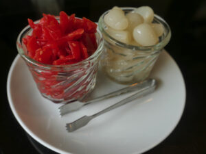 まずテーブルに福神漬けとラッキョがどっさり置かれた。