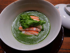春の香りとほろ苦さに蟹の甘味が加わり