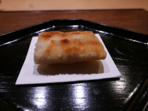 カラスミは餅と揚げを使い、食感を変えることで味の変化を楽しむ。
